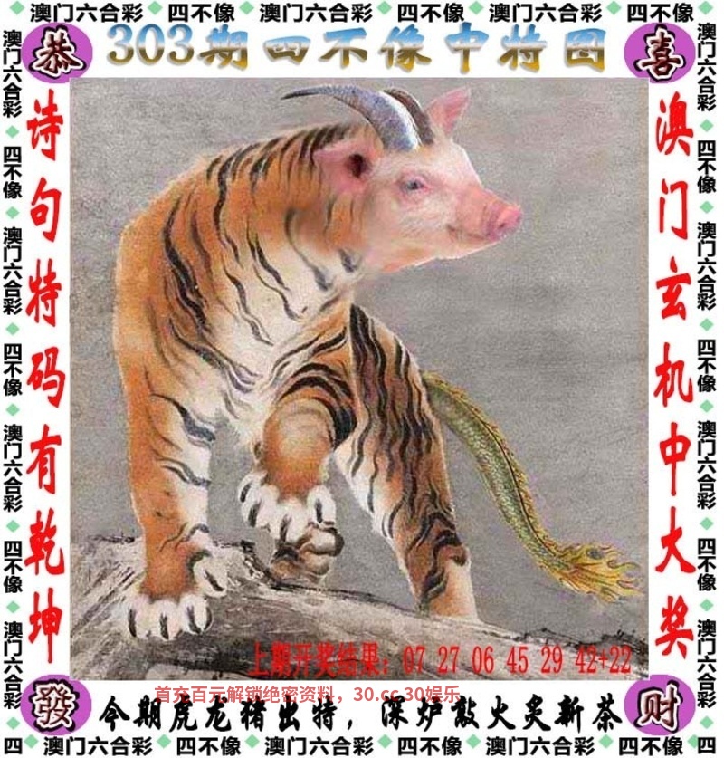 300期:今期鸡马猪出特,一别朱门三四春 开:虎40准